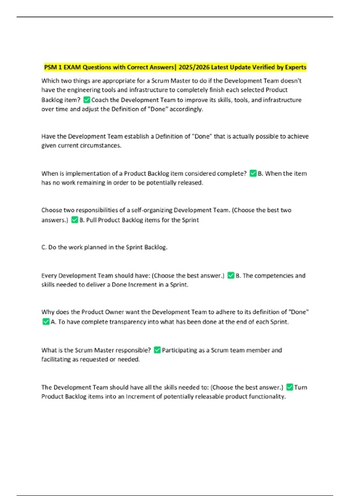 PSM 1 EXAM Questions with Correct Answers| 2025/2026 Latest Update Verified by Experts