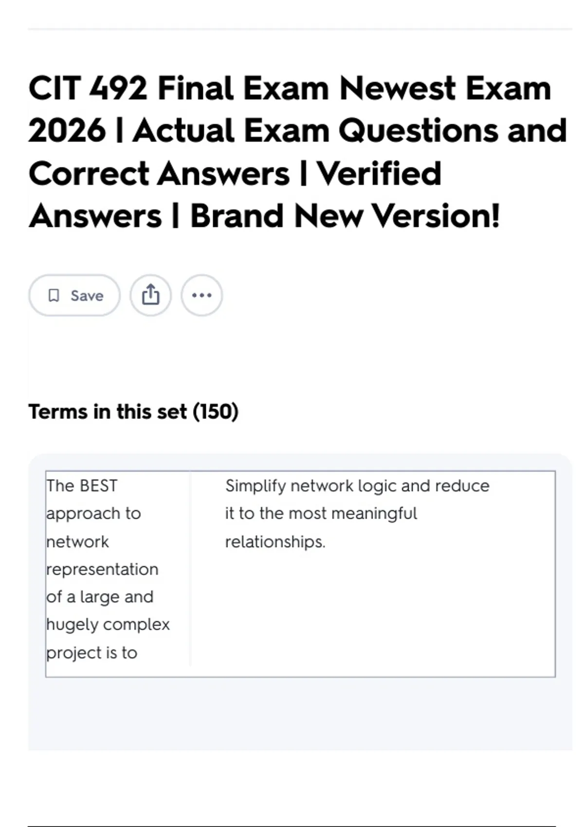 CIT 492 Final Exam Newest Exam 2026 | Actual Exam Questions and Correct Answers | Verified Answers | Brand New Version!