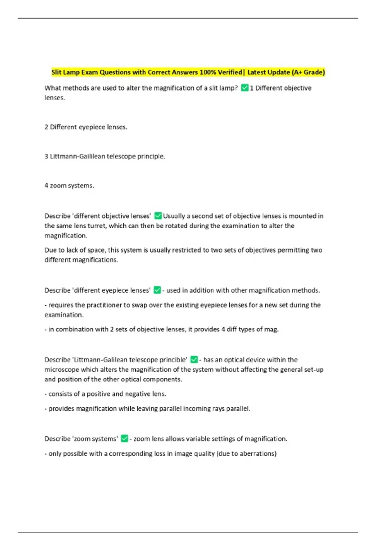 Slit Lamp Exam Questions with Correct Answers 100% Verified| Latest Update (A+ Grade)