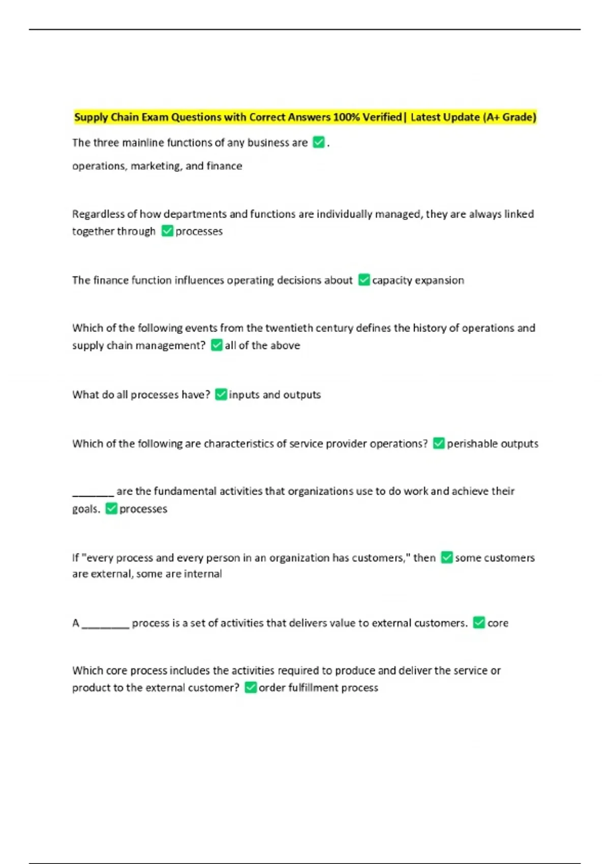 Supply Chain Exam Questions with Correct Answers 100% Verified| Latest Update (A+ Grade)
