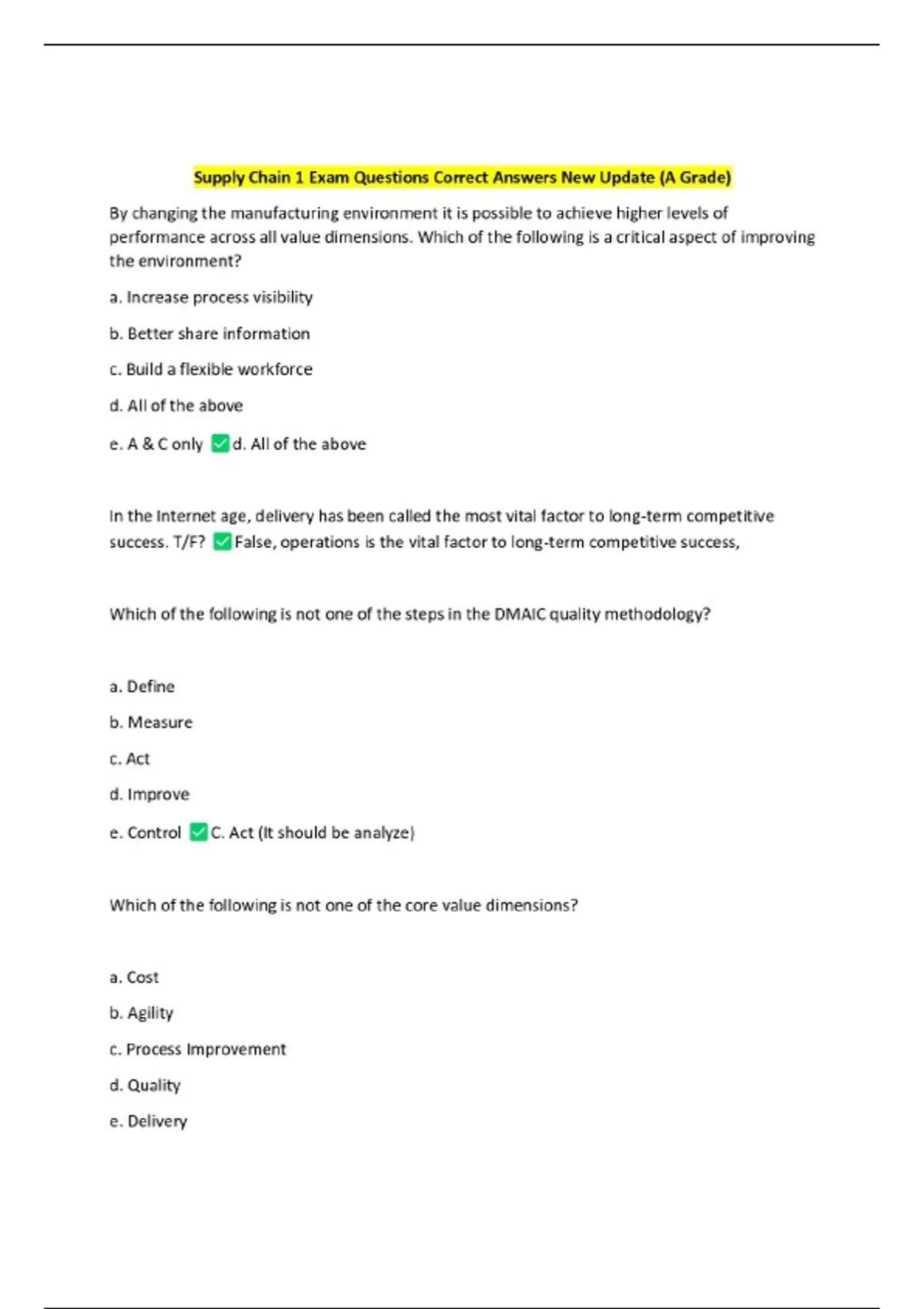 Supply Chain 1 Exam Questions Correct Answers New Update (A Grade)