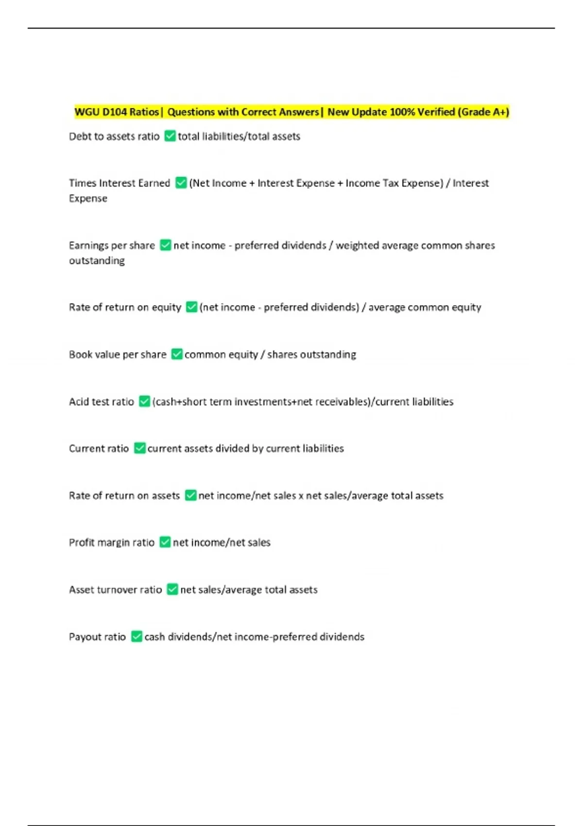 WGU D104 Ratios| Questions with Correct Answers| New Update 100% Verified (Grade A+)