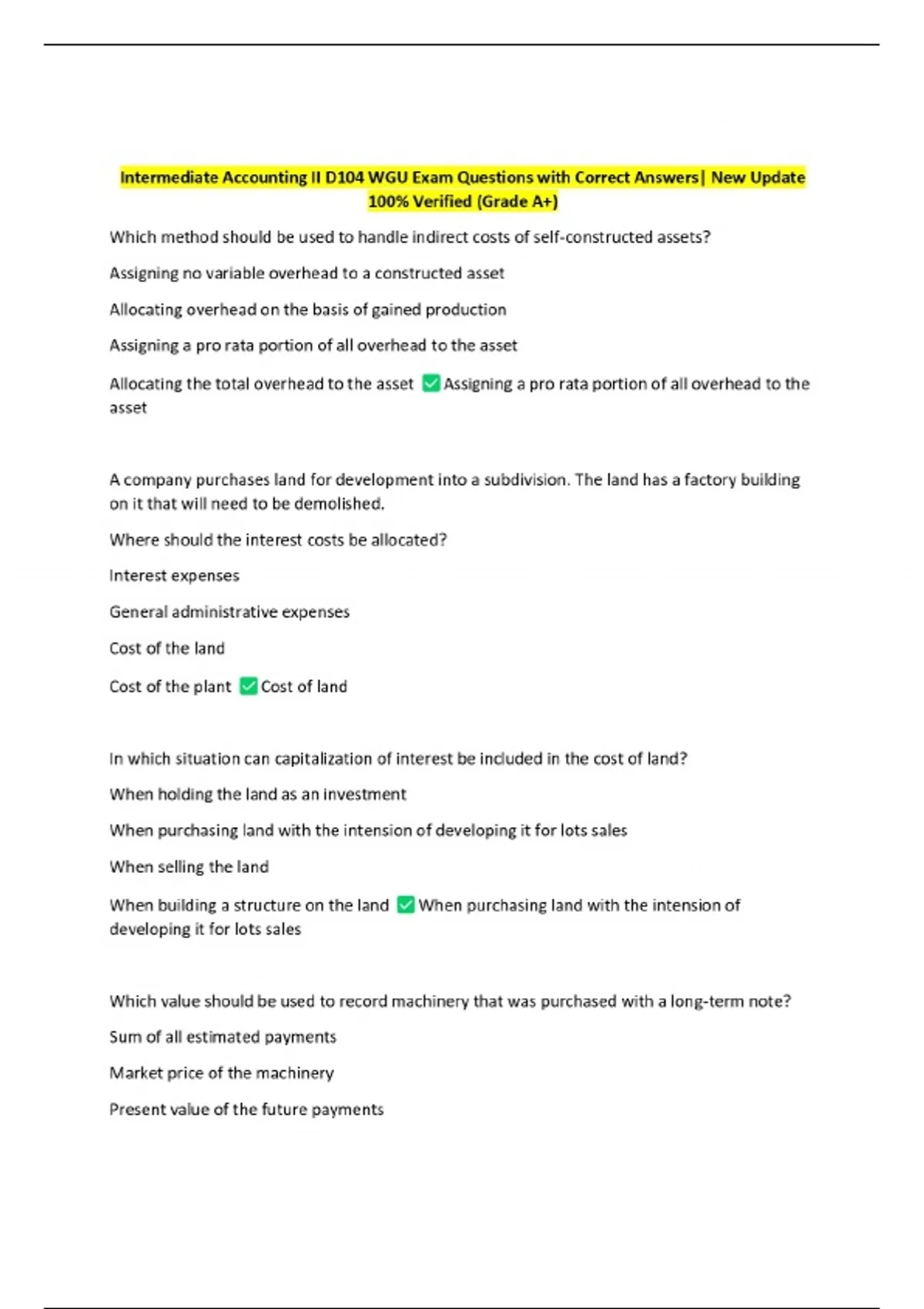 Intermediate Accounting II D104 WGU Exam Questions with Correct Answers| New Update 100% Verified (Grade A+)