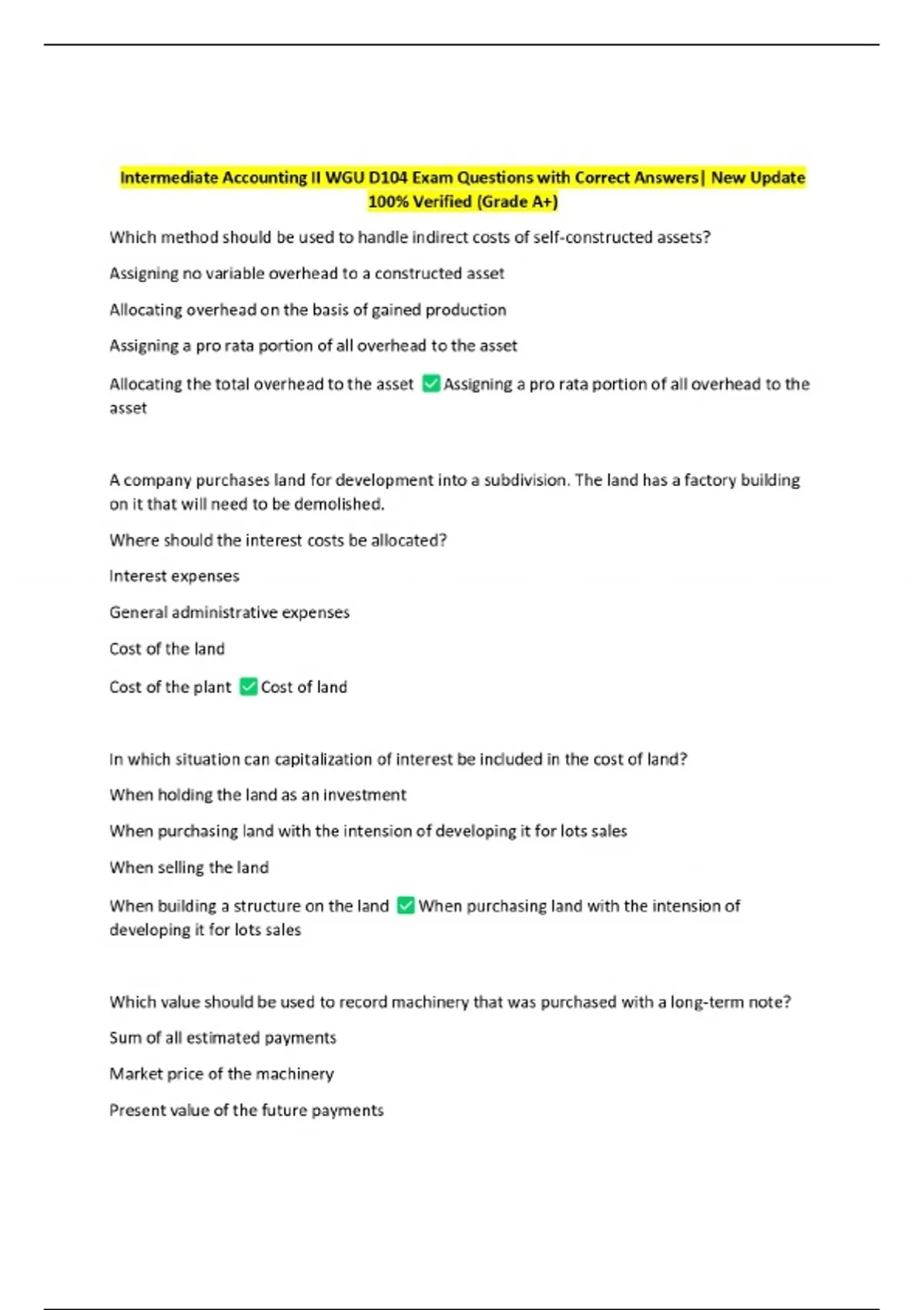 Intermediate Accounting II WGU D104 Exam Questions with Correct Answers| New Update 100% Verified (Grade A+)