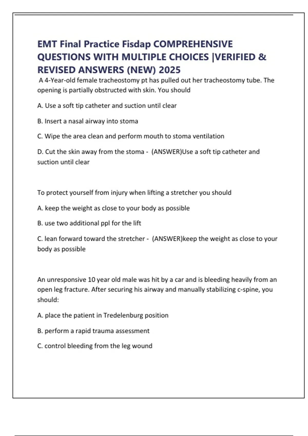 EMT Final Practice Fisdap COMPREHENSIVE