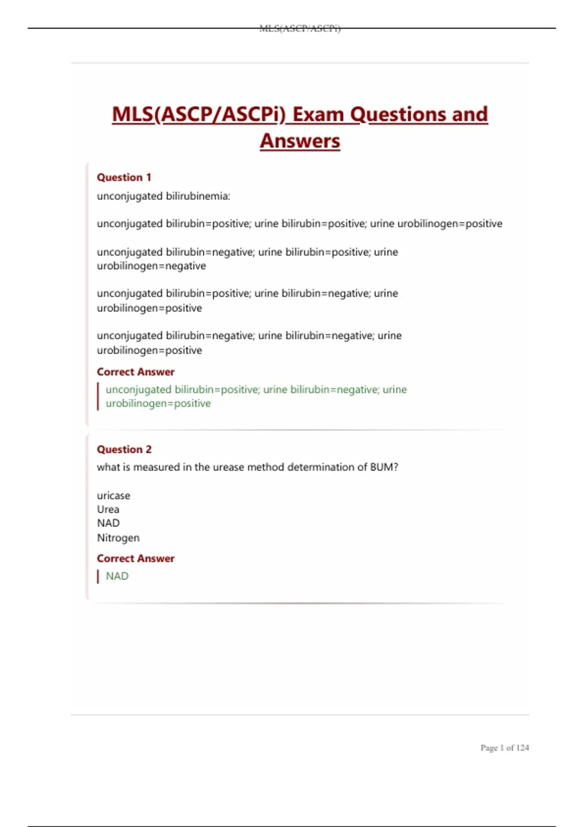 MLS(ASCP/ASCPi) Exam Questions and Answers