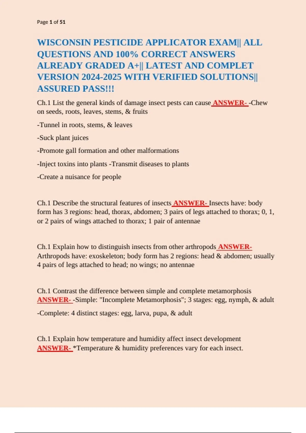 Ch.1 List the general kinds of damage insect pests can cause ANSWER- -Chew
