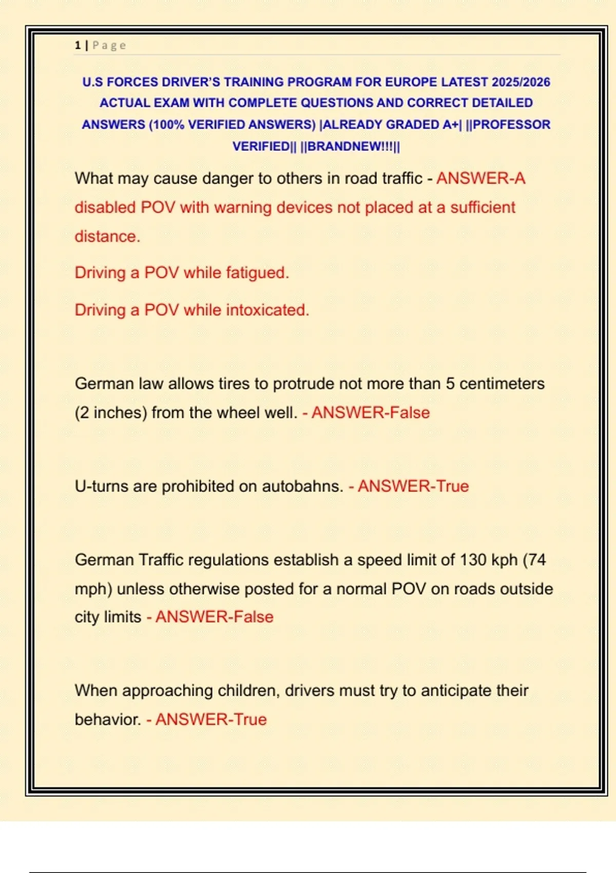 U.S FORCES DRIVER’S TRAINING PROGRAM FOR EUROPE LATEST 2025/2026