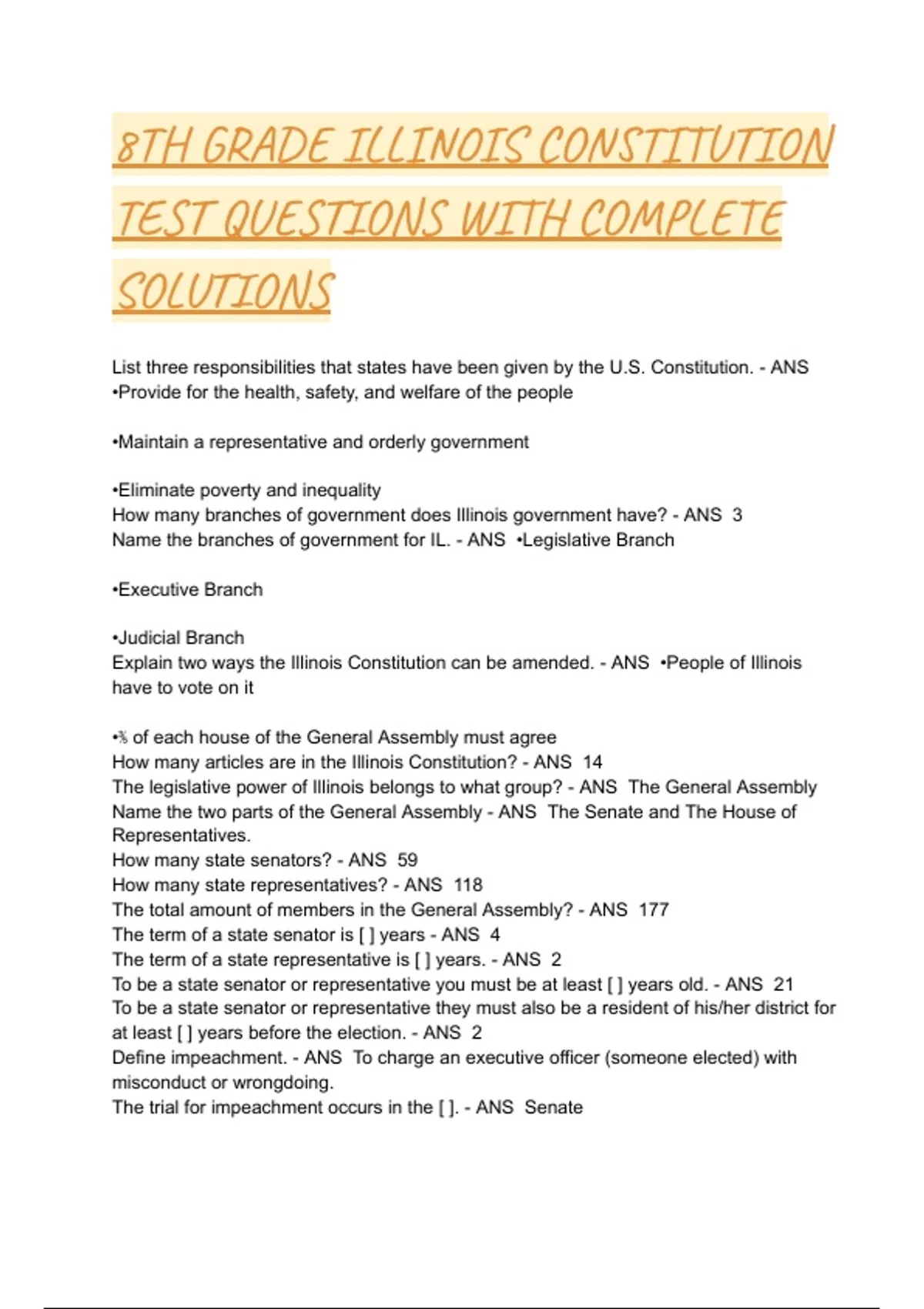 8TH GRADE ILLINOIS CONSTITUTION TEST QUESTIONS