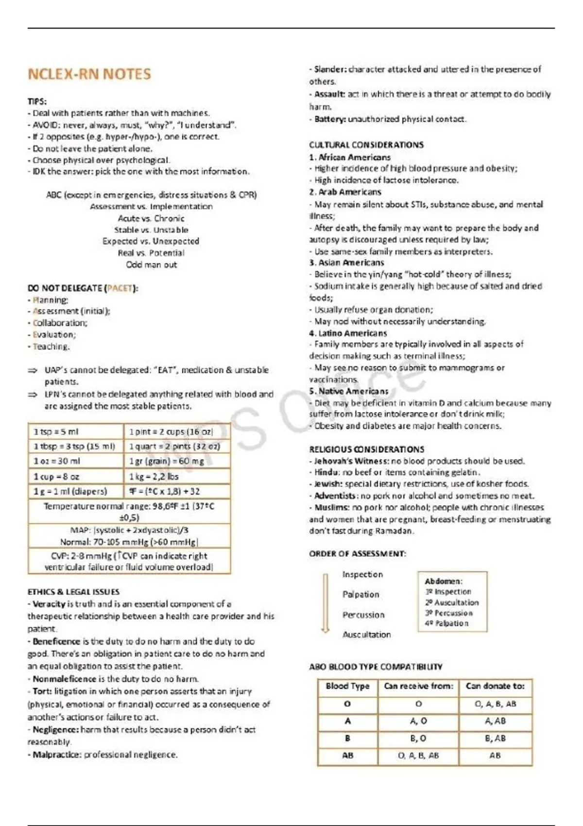 NCLEX- RN NOTES AND STUDY GUIDE 2025