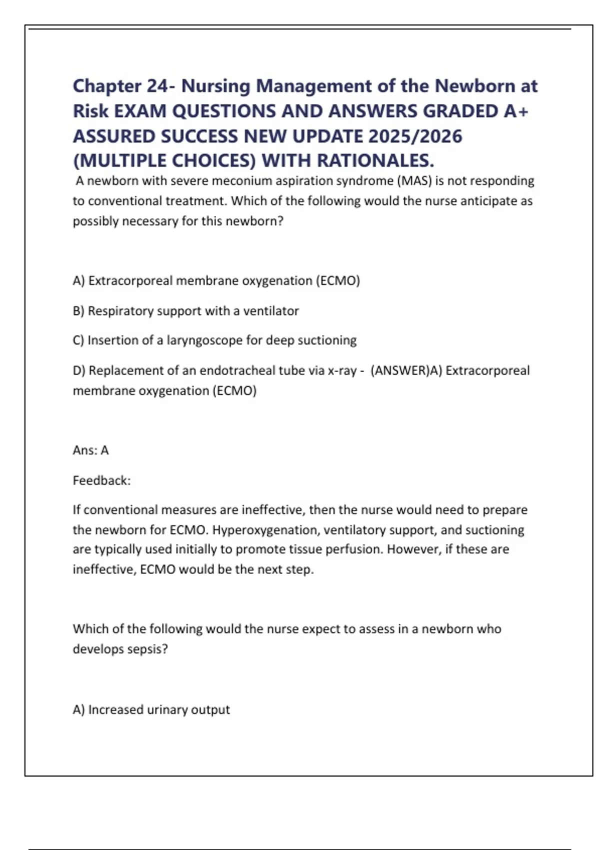 A newborn with severe meconium aspiration syndrome (MAS) is not responding