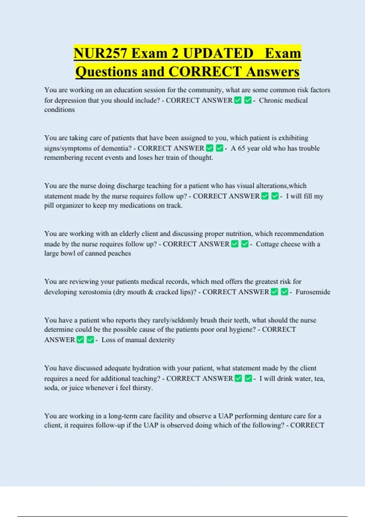 Questions and CORRECT Answers