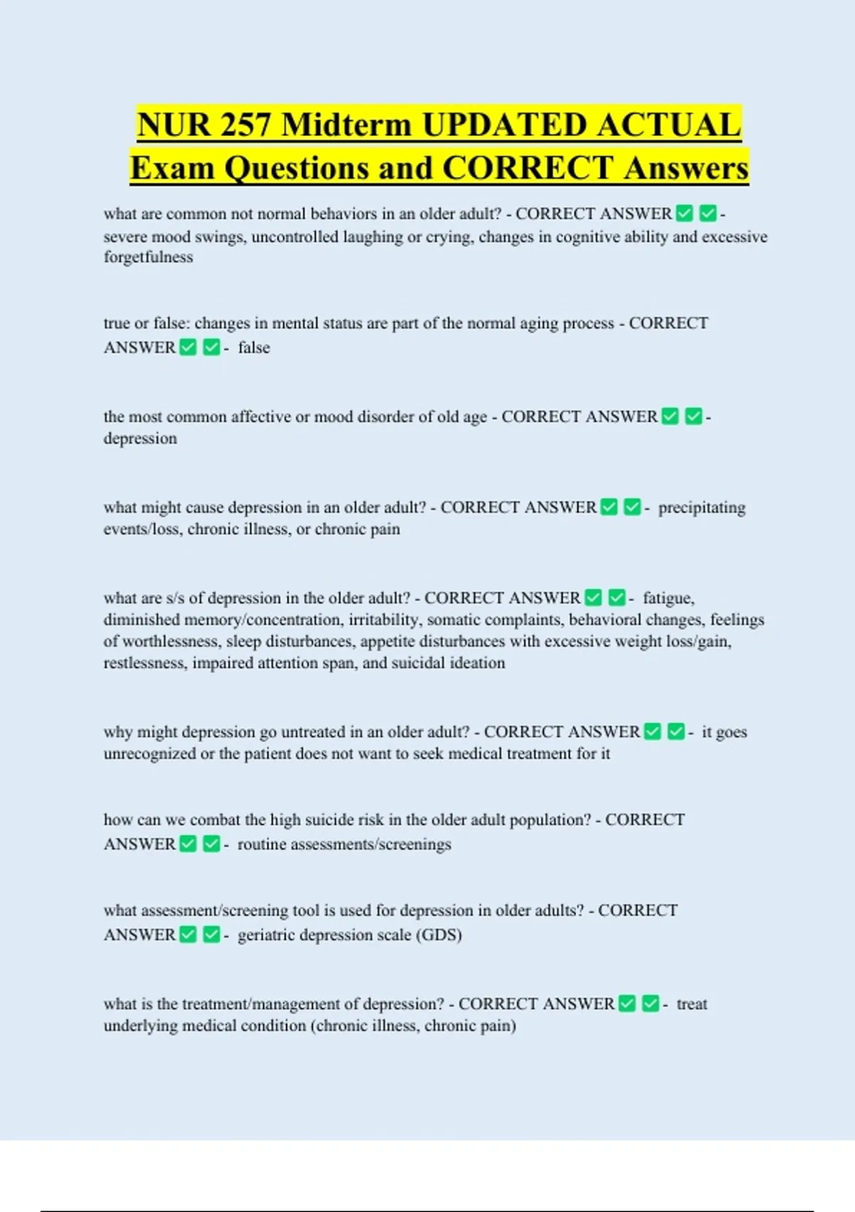 the most common affective or mood disorder of old age - CORRECT ANSWER -
