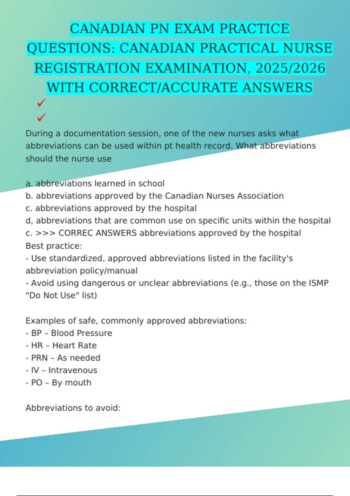 c. >>> CORREC ANSWERS abbreviations approved by the hospital