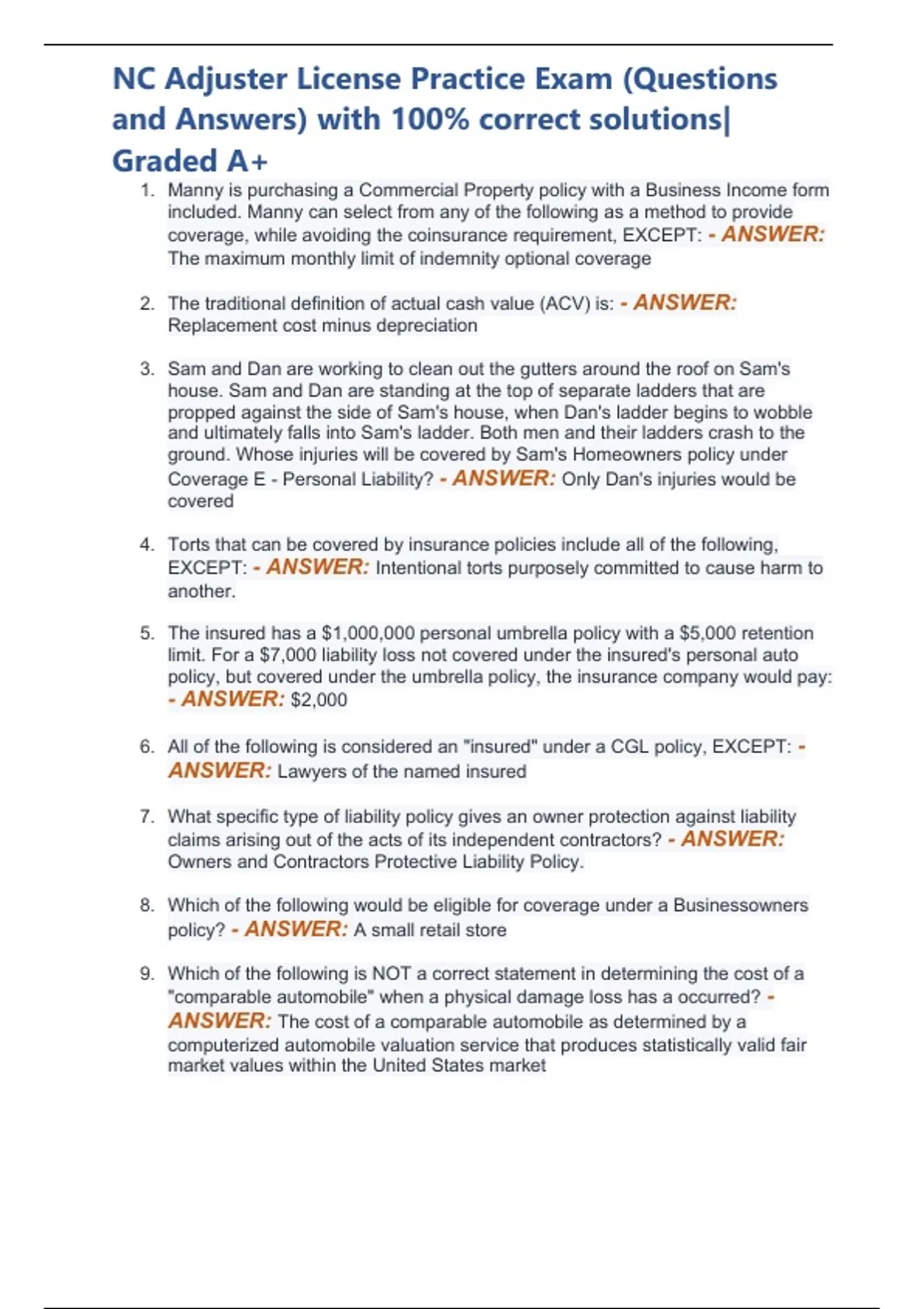 NC Adjuster License Practice Exam (Questions