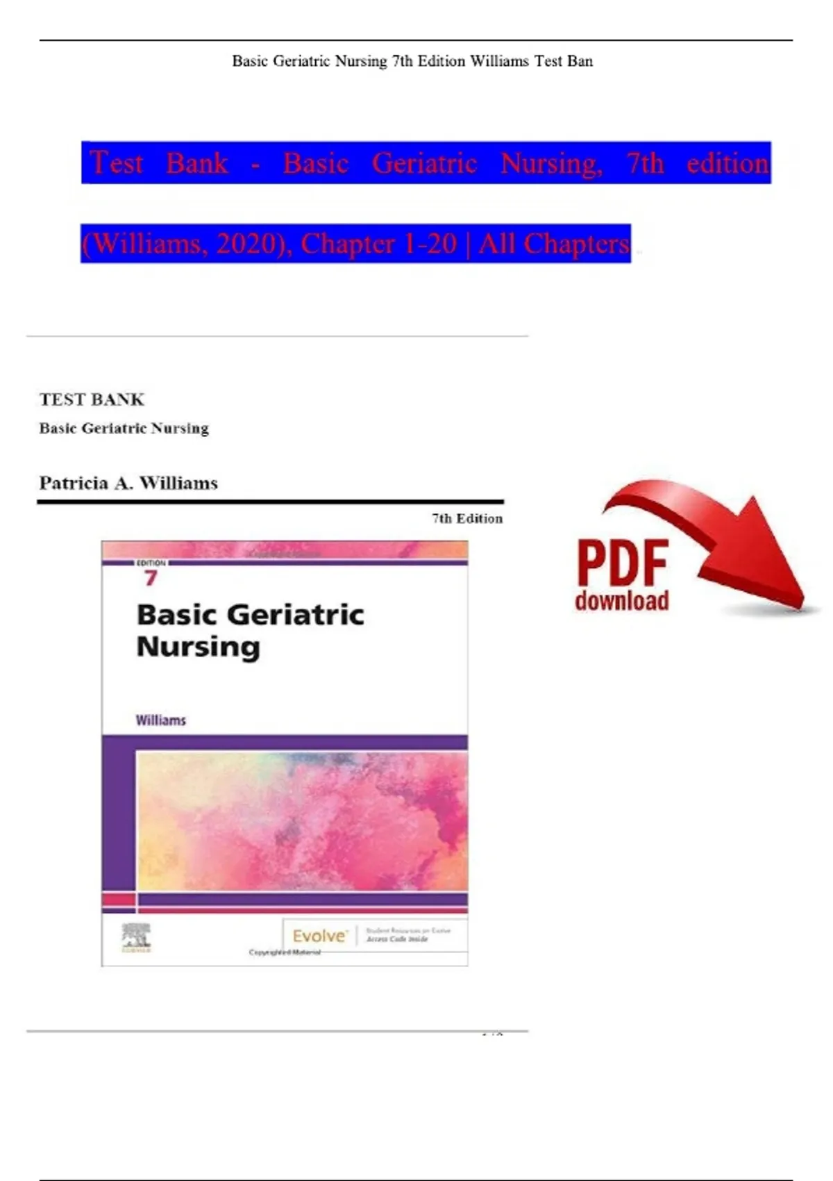 Test Bank Basic geriatric nursing 7th edition williams