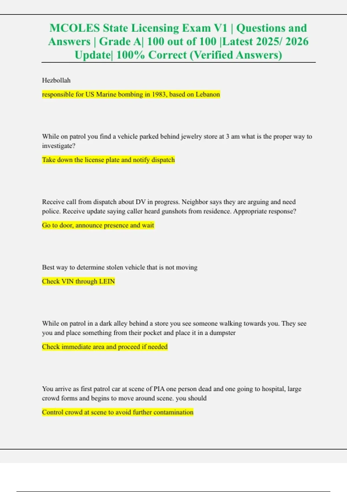 , MCOLES State Licensing Exam V1 | Questions and