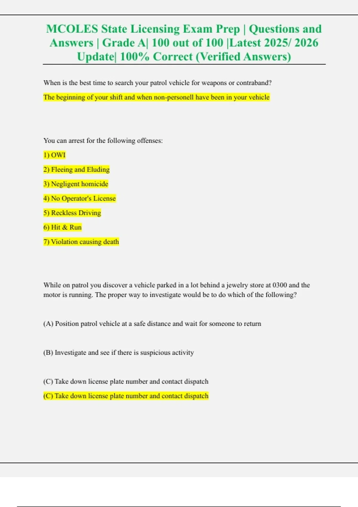 , MCOLES State Licensing Exam Prep | Questions and