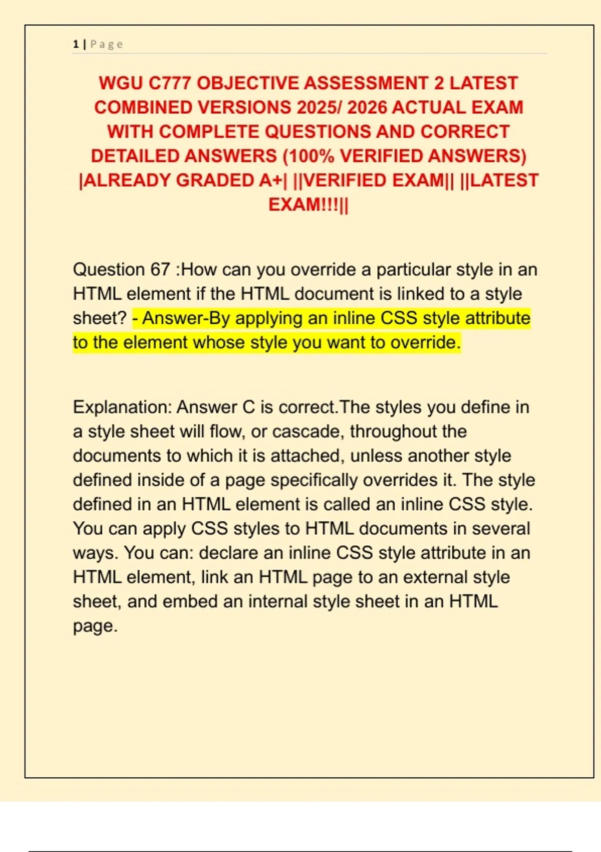 WGU C777 OBJECTIVE ASSESSMENT 2 LATEST