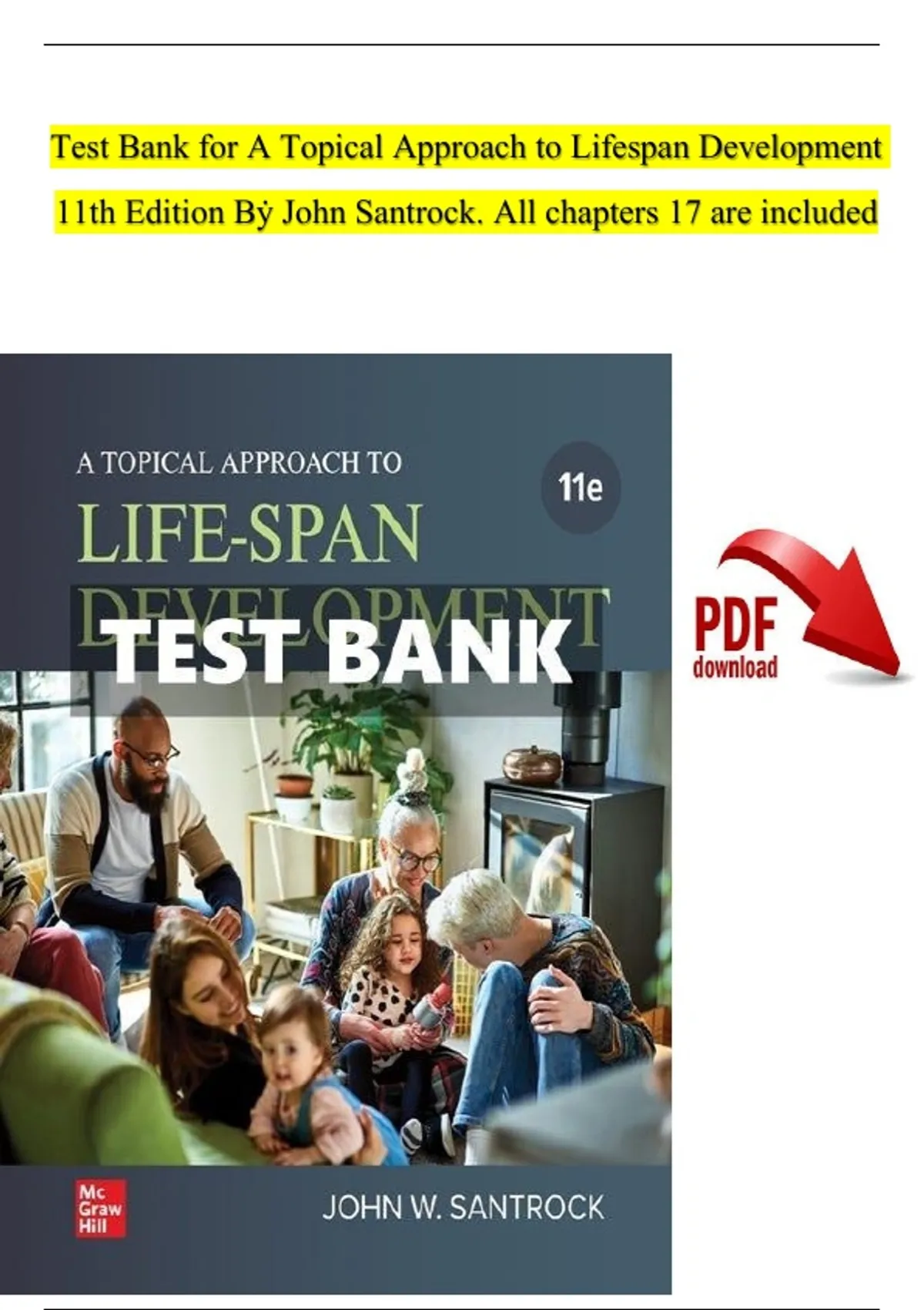 TEST BANK - A Topical Approach to Lifespan Development 11th Edition By John Santrock, All Chapters 1 - 17, Completely Covered With Questions And Detailed Solutions Newest Version.