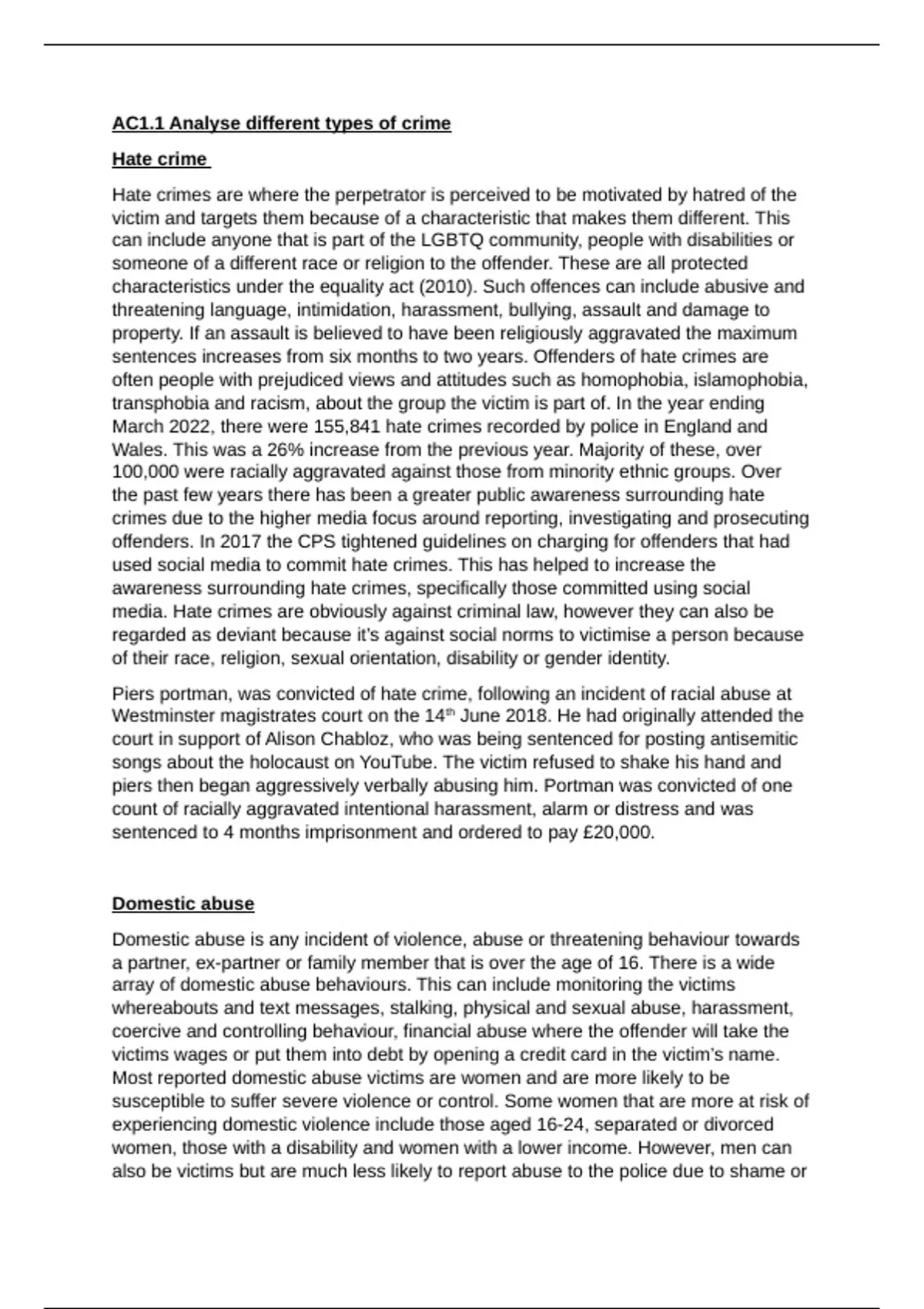 This includes all the notes i took into the criminology unit 1 exam, where I got an A. It includes AC1.1 - AC2.2 but doesnt include anything to do with designing your own campaign