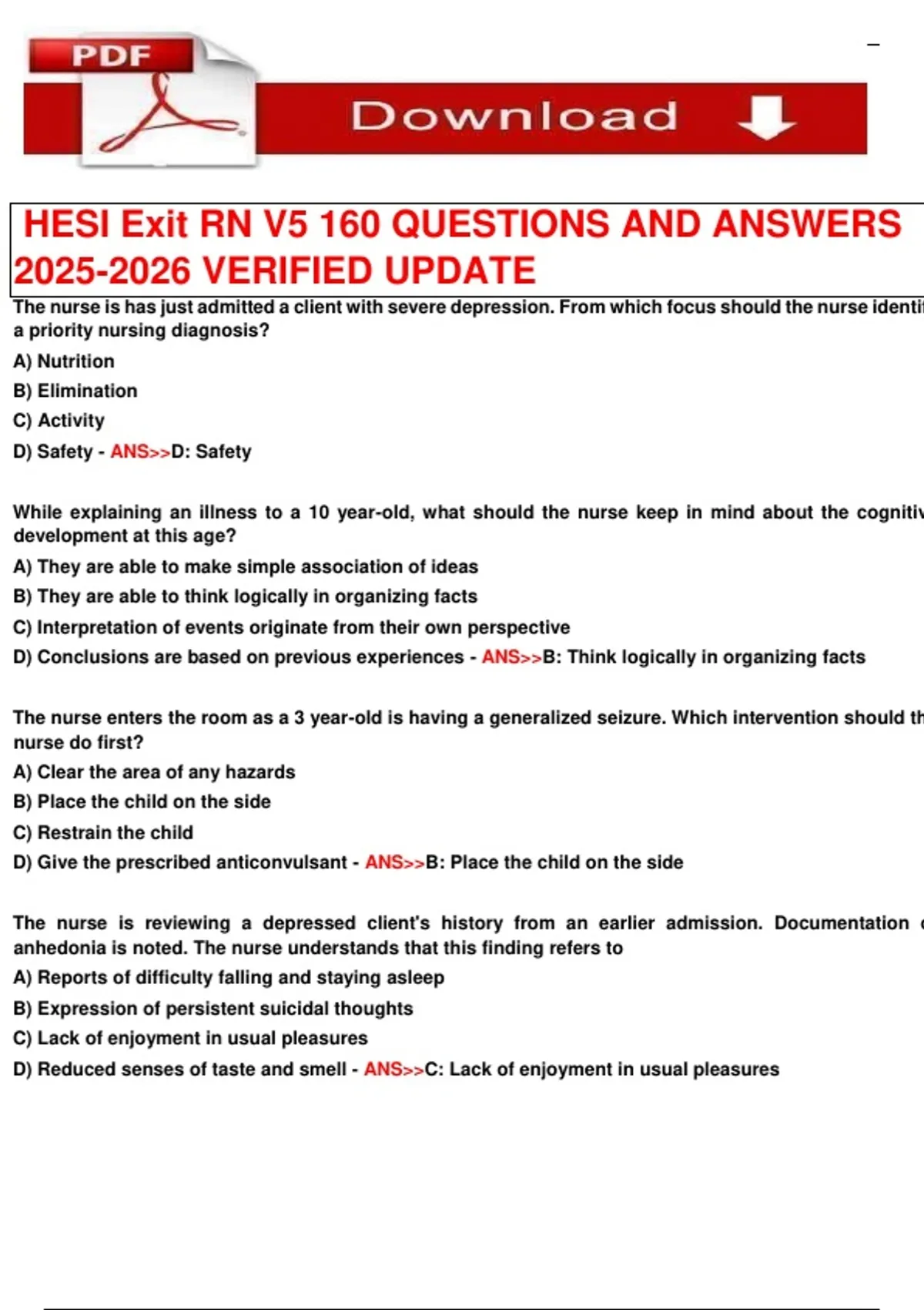 HESI Exit RN V5 160 QUESTIONS AND ANSWERS