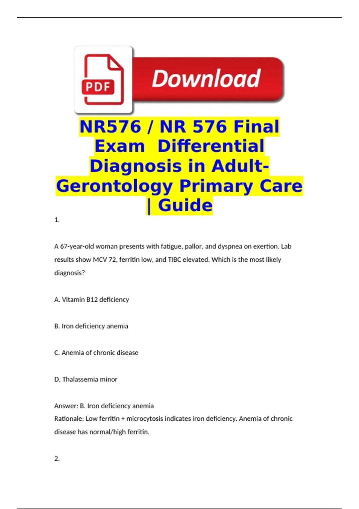 Answer: B. Iron deficiency anemia