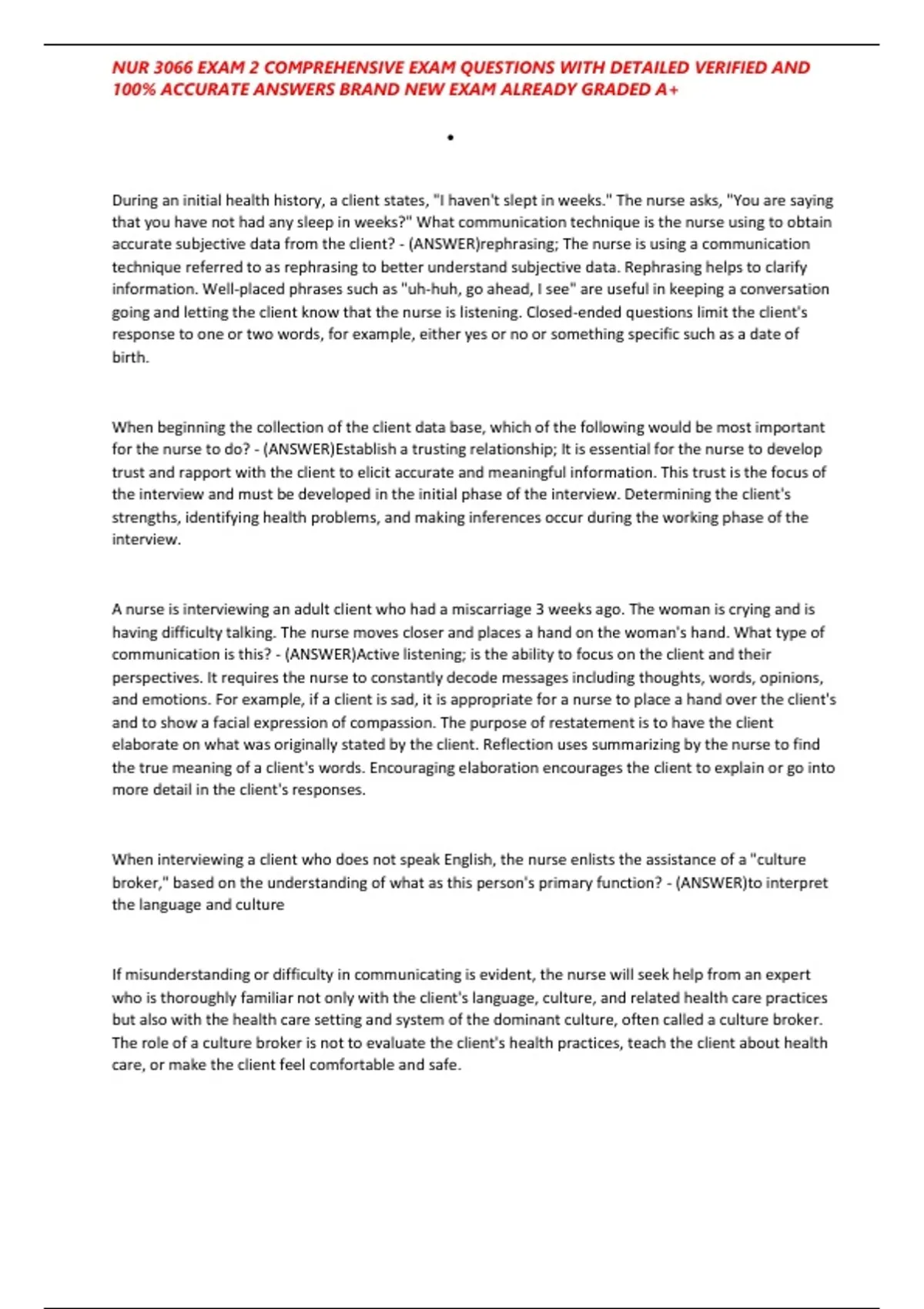 , NUR 3066 EXAM 2 COMPREHENSIVE EXAM QUESTIONS WITH DETAILED VERIFIED AND