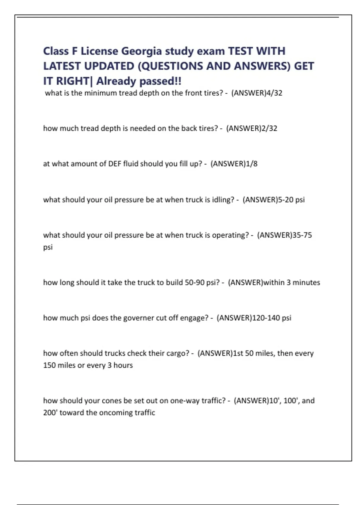 Class F License Georgia study exam TEST WITH