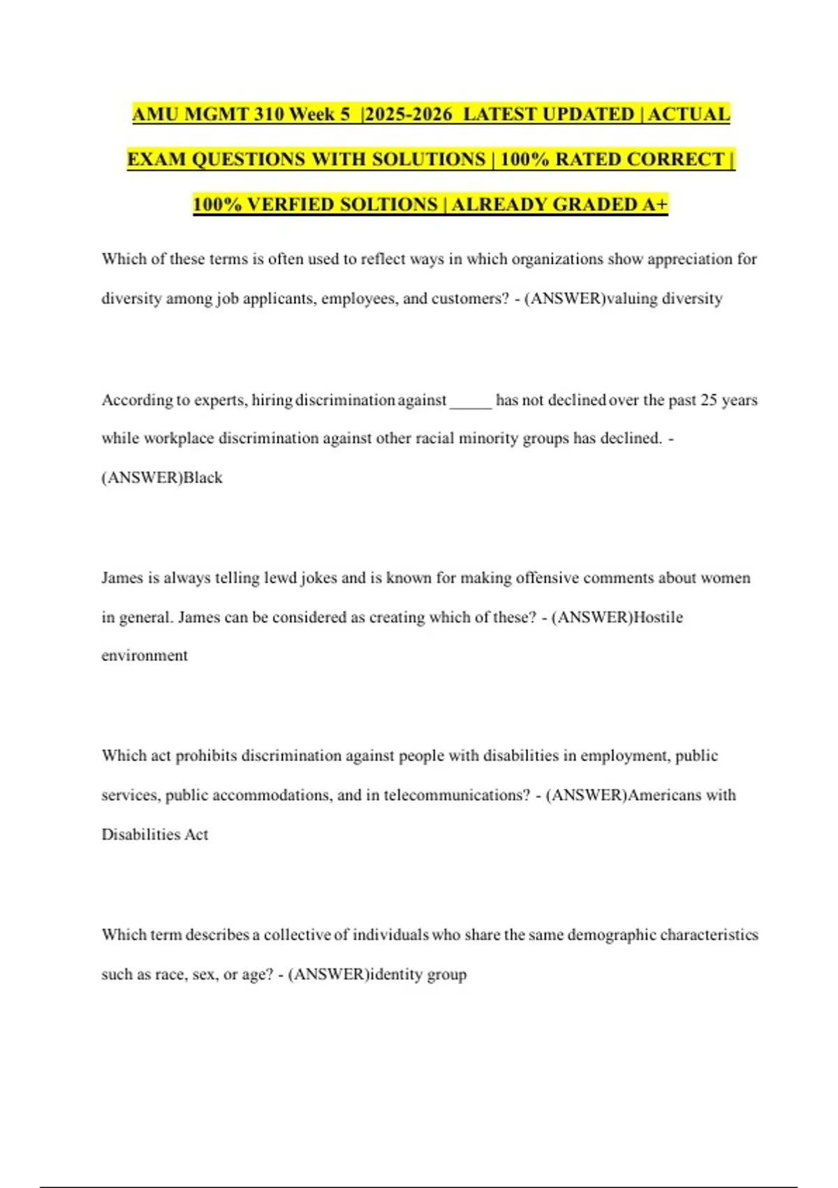 EXAM QUESTIONS WITH SOLUTIONS | 100% RATED CORRECT |