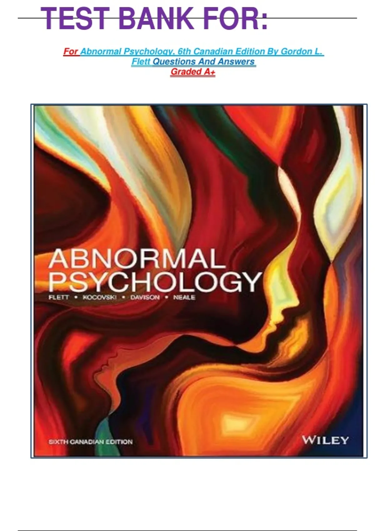 For Abnormal Psychology, 6th Canadian Edition By Gordon L.