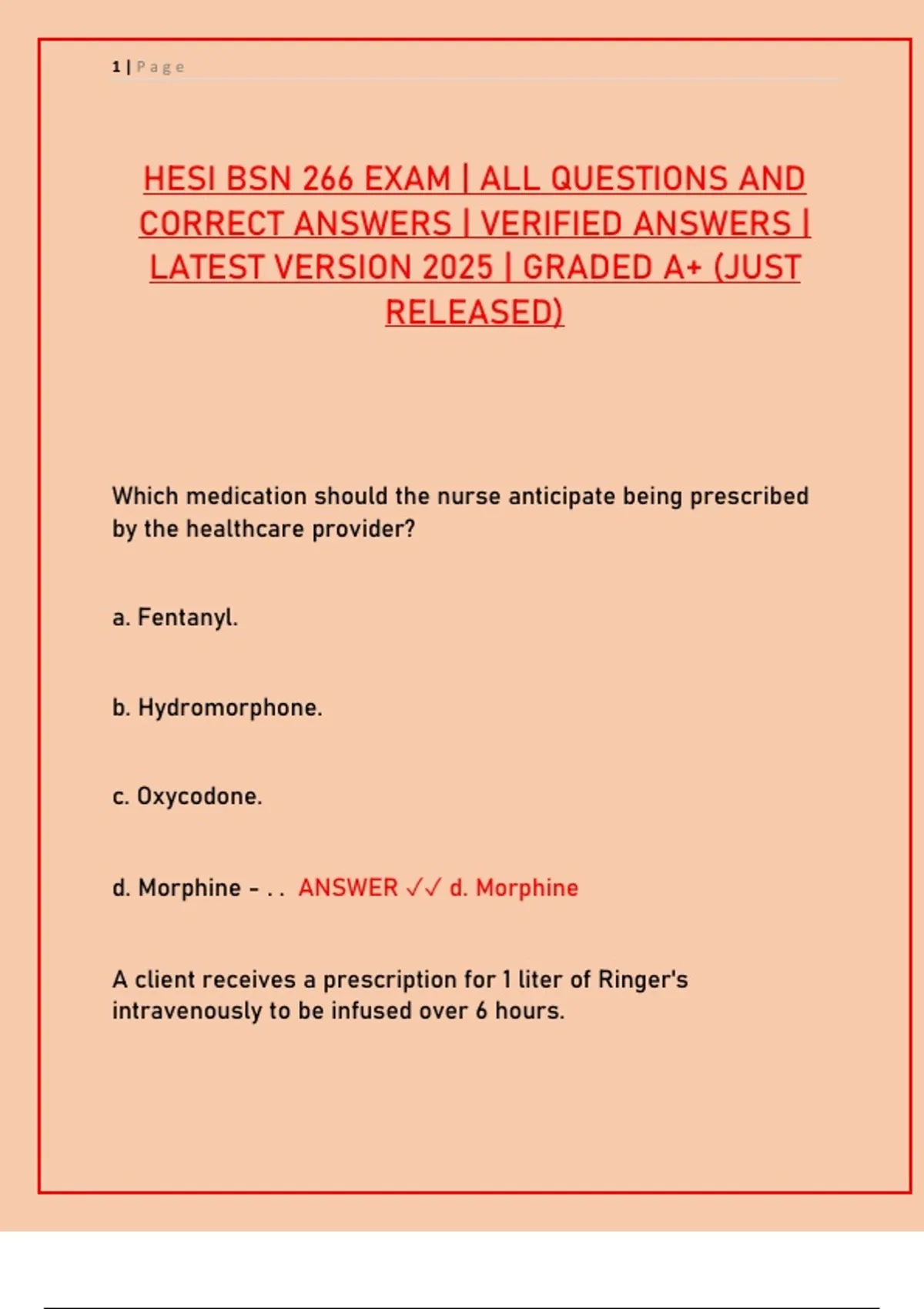 d. Morphine - . . ANSWER ✓✓ d. Morphine