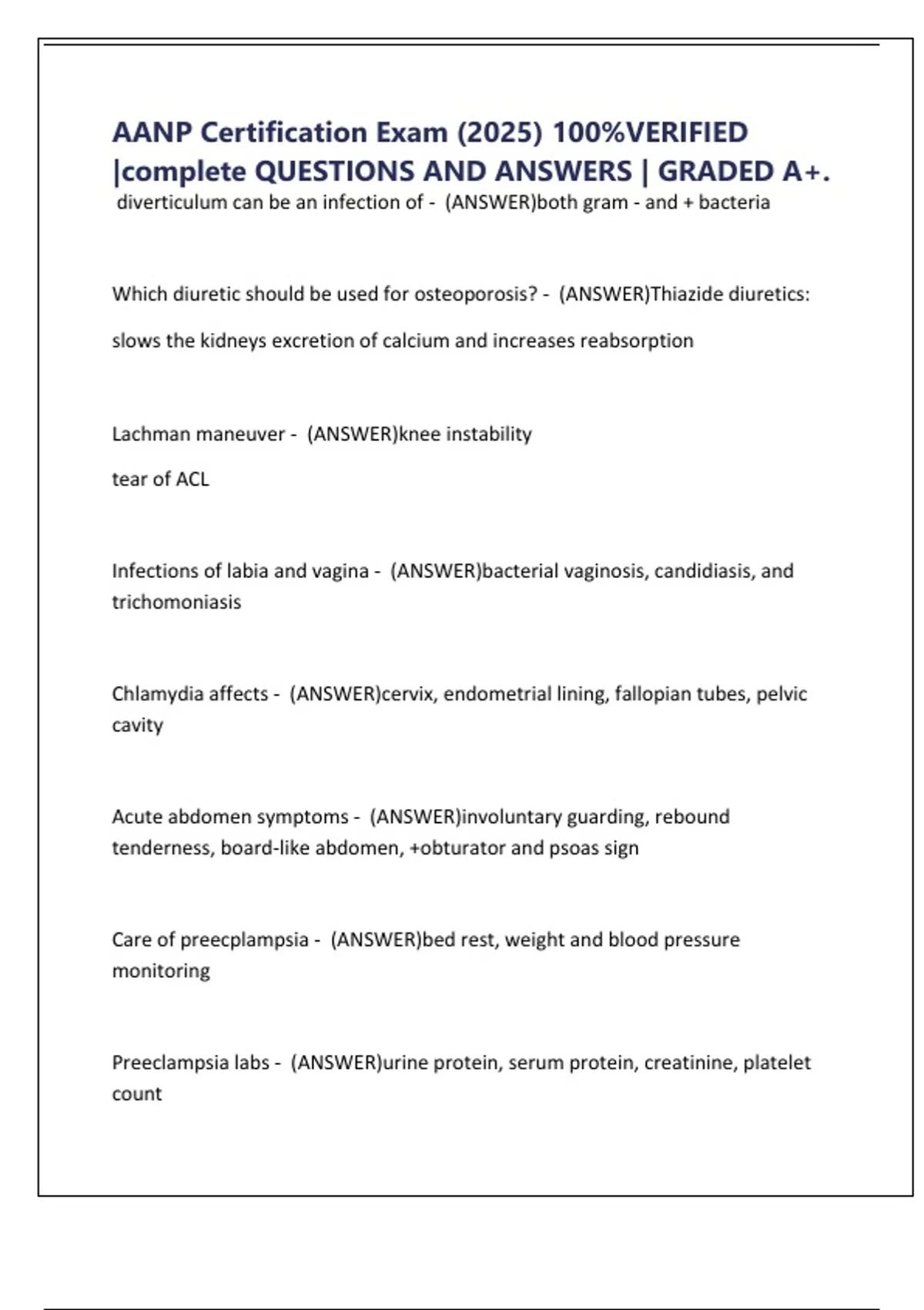 AANP Certification Exam (2025) 100%VERIFIED |complete QUESTIONS AND ANSWERS | GRADED A+.