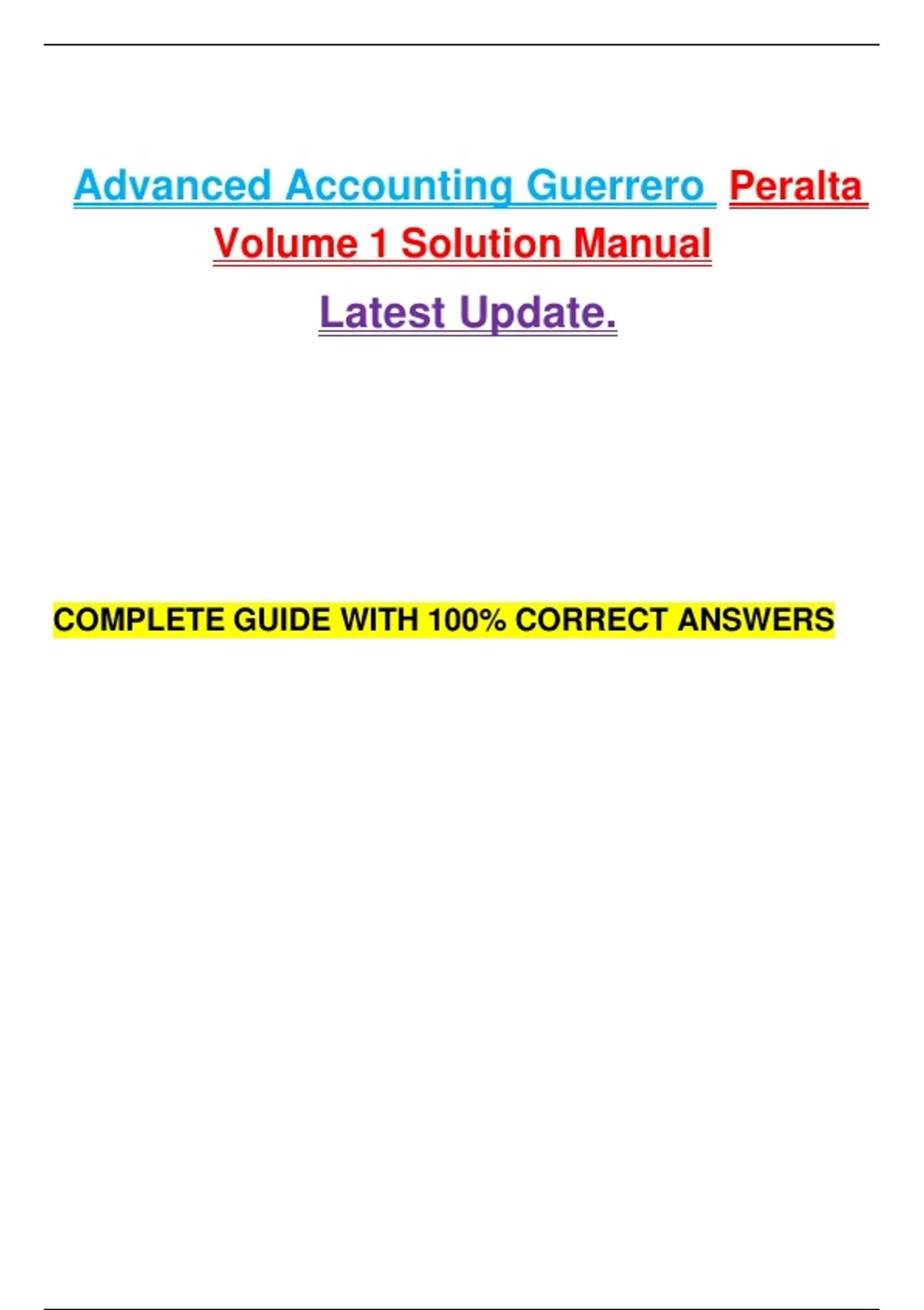 Advanced Accounting Guerrero Peralta Volume 1 Solution Manual Latest Update. COMPLETE GUIDE WITH 100% CORRECT ANSWERS