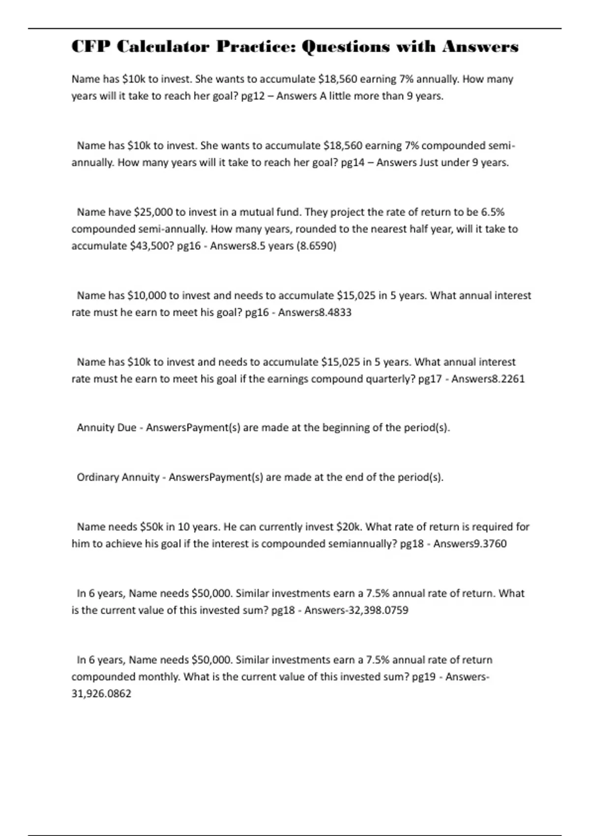 annually. How many years will it take to reach her goal? pg14 – Answers Just under 9 years.