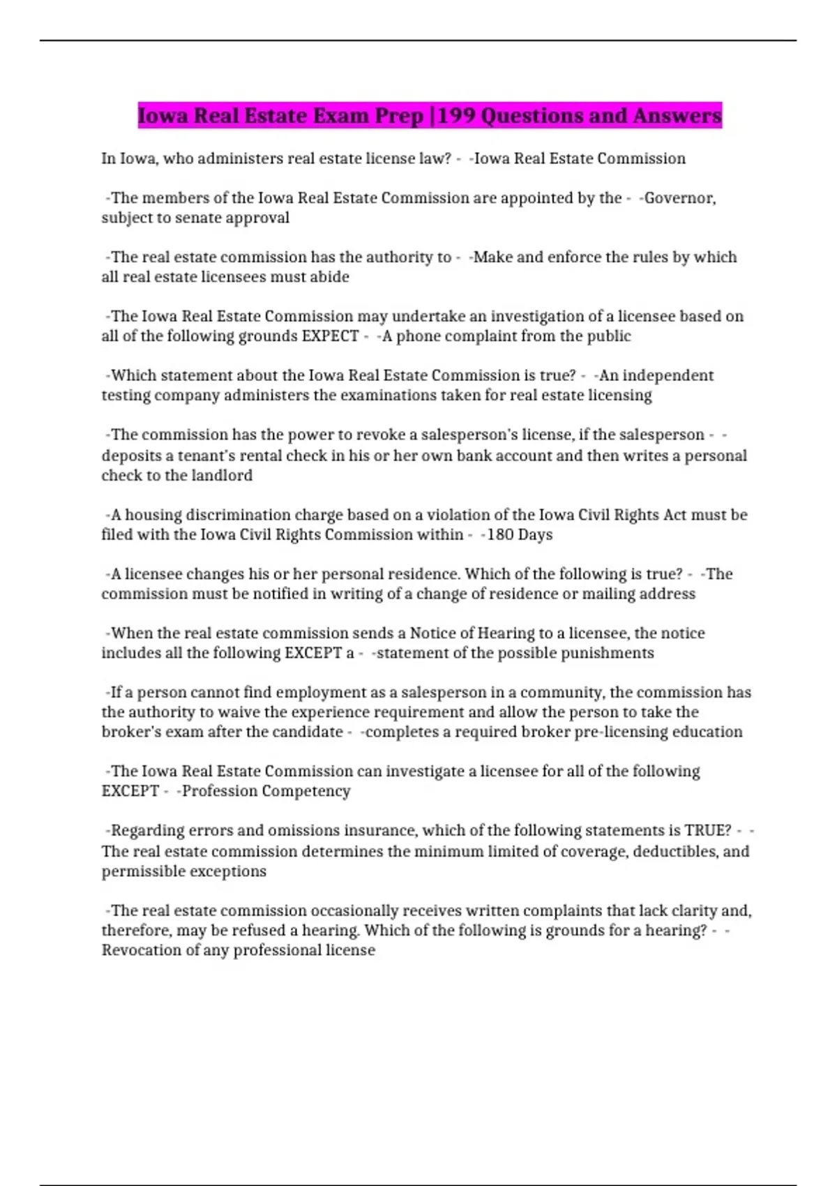Iowa Real Estate Exam Prep |199 Questions and Answers