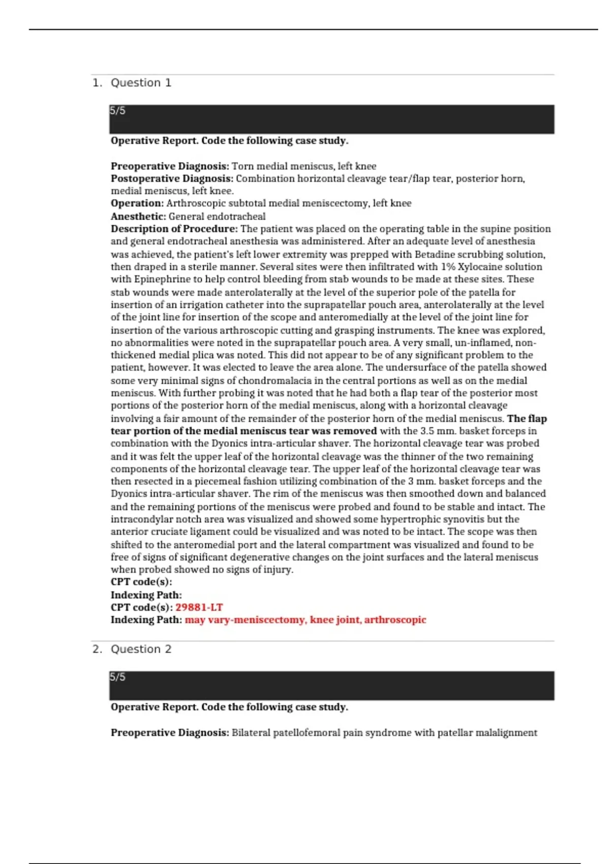 Operative Report. Code the following case study.