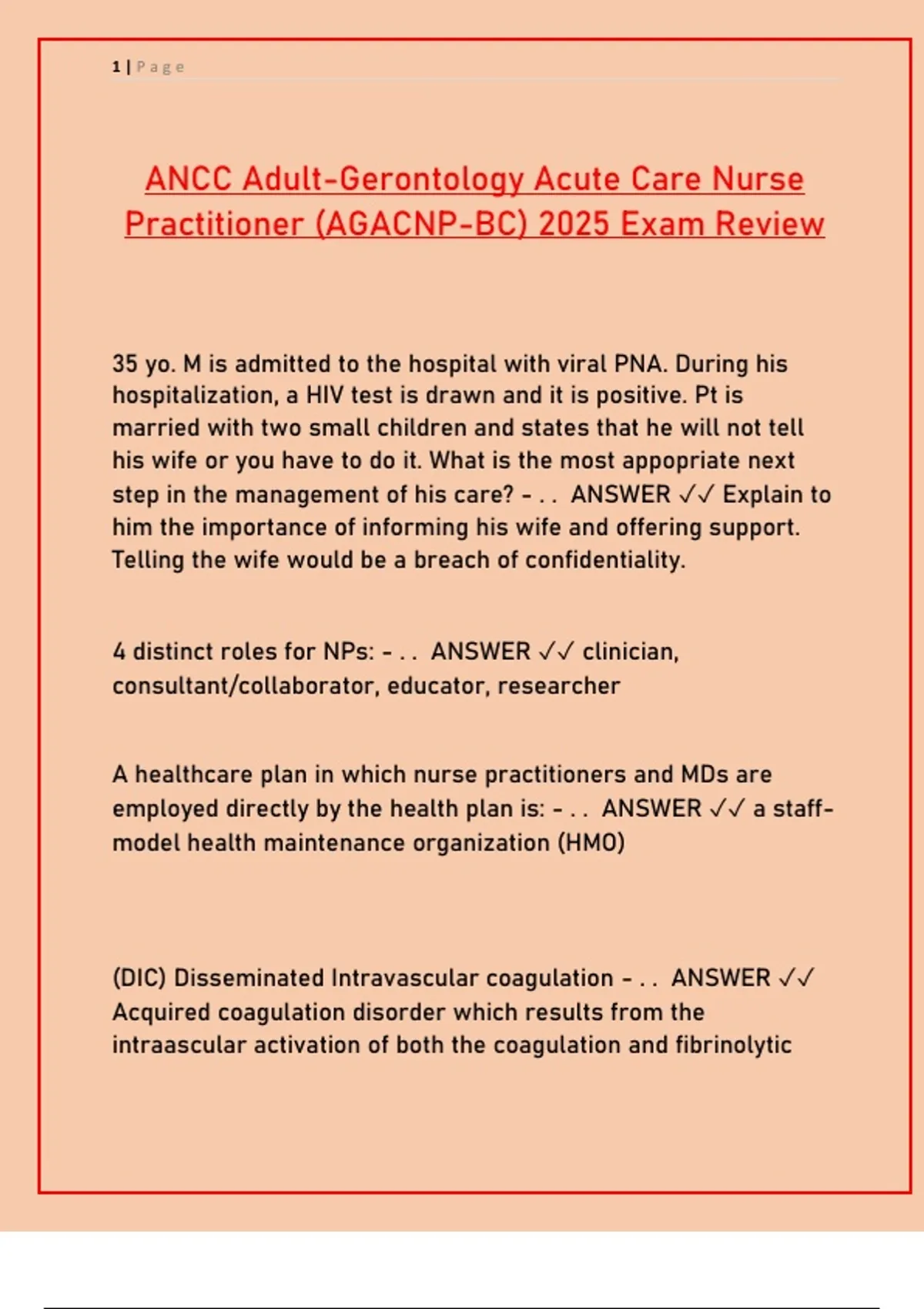 Practitioner (AGACNP-BC) 2025 Exam Review