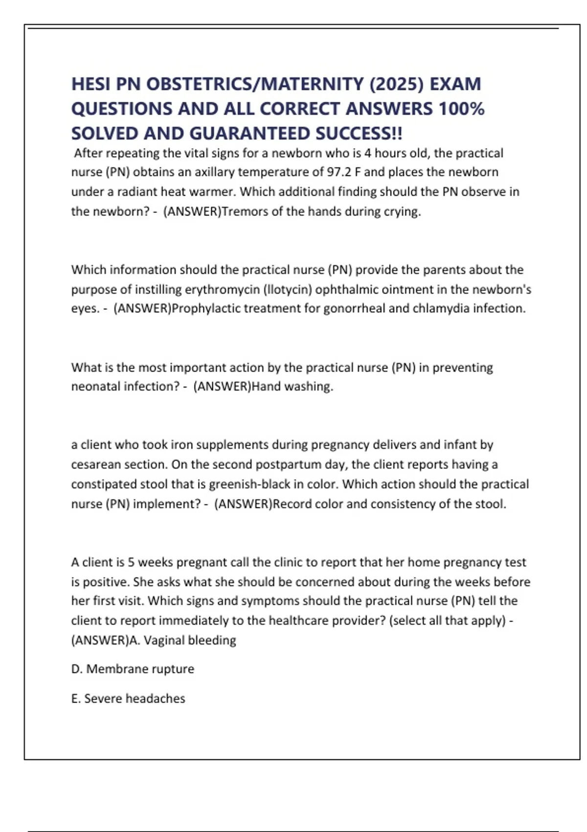 HESI PN OBSTETRICS/MATERNITY (2025) EXAM
