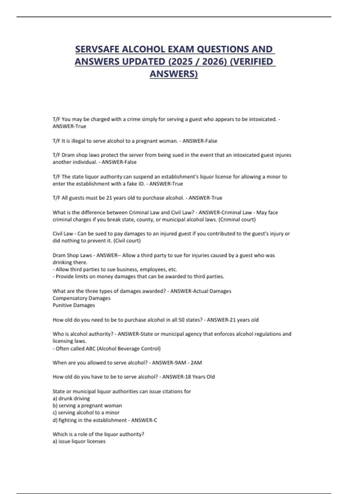SERVSAFE ALCOHOL EXAM QUESTIONS AND