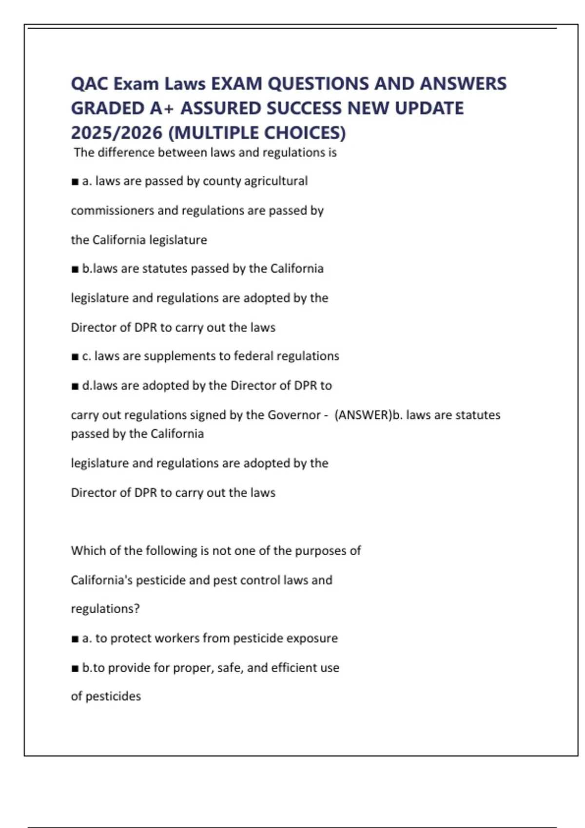 QAC Exam Laws EXAM QUESTIONS AND ANSWERS