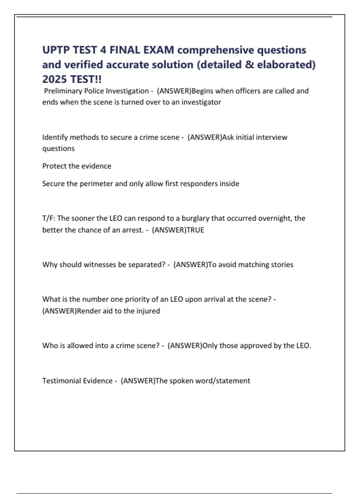 UPTP TEST 4 FINAL EXAM comprehensive questions and verified accurate solution (detailed & elaborated) 2025 TEST!!