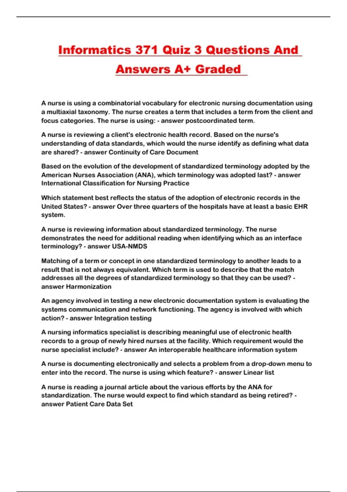 Informatics 371 Quiz 3 Questions And Answers A+ Graded ...