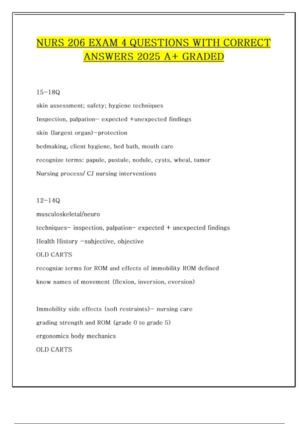 NURS 206 EXAM 4 QUESTIONS WITH CORRECT ANSWERS 2025 A+ GRADED