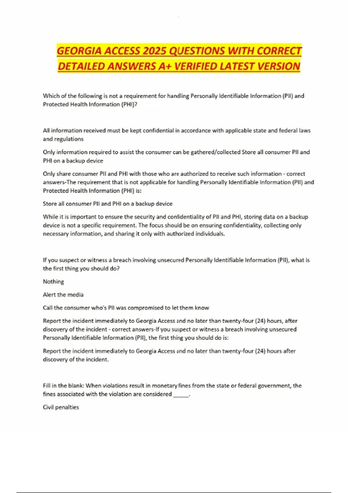 GEORGIA ACCESS 2025 QUESTIONS WITH CORRECT DETAILED ANSWERS A+ VERIFIED LATEST VERSION