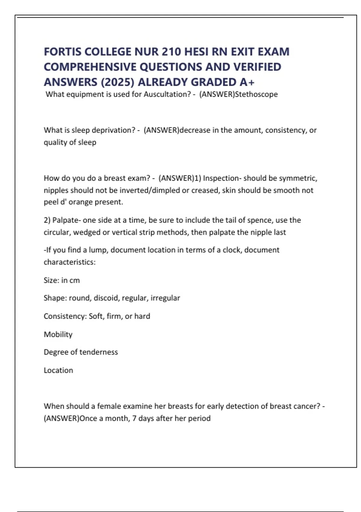 FORTIS COLLEGE NUR 210 HESI RN EXIT EXAM