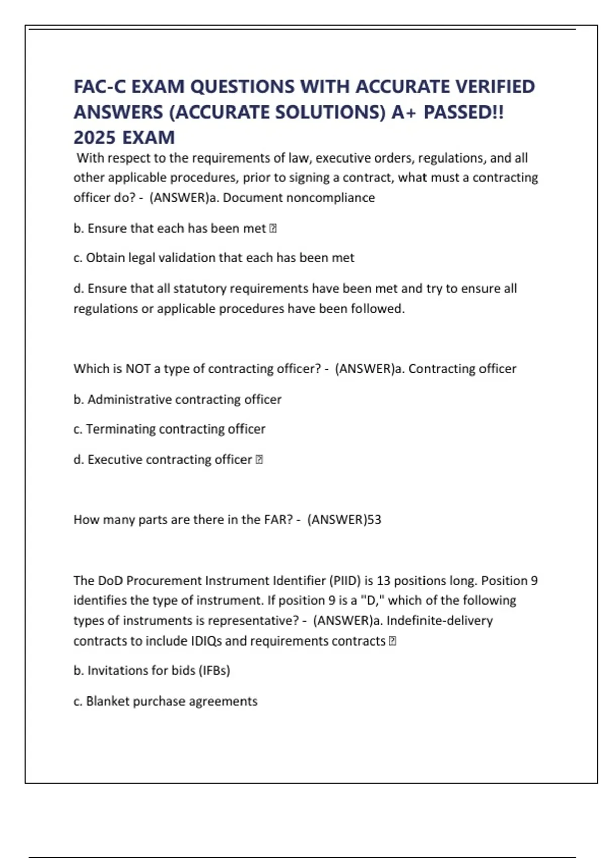 FAC-C EXAM QUESTIONS WITH ACCURATE VERIFIED ANSWERS (ACCURATE SOLUTIONS) A+ PASSED!! 2025 EXAM