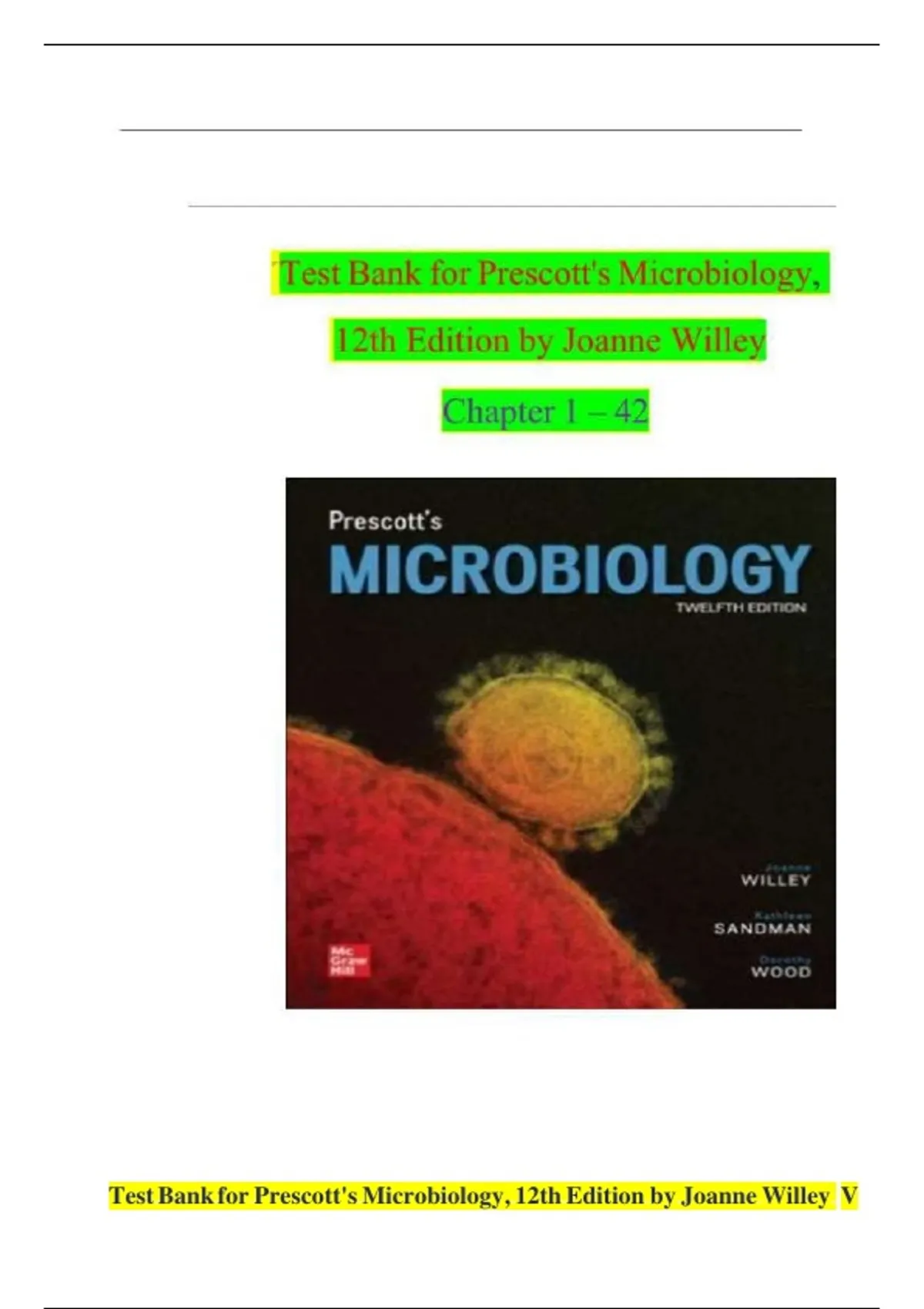 TEST BANK For Prescott's Microbiology, 12th Edition by Joanne Willey| Verified Chapter's 1 - 42 | Complete