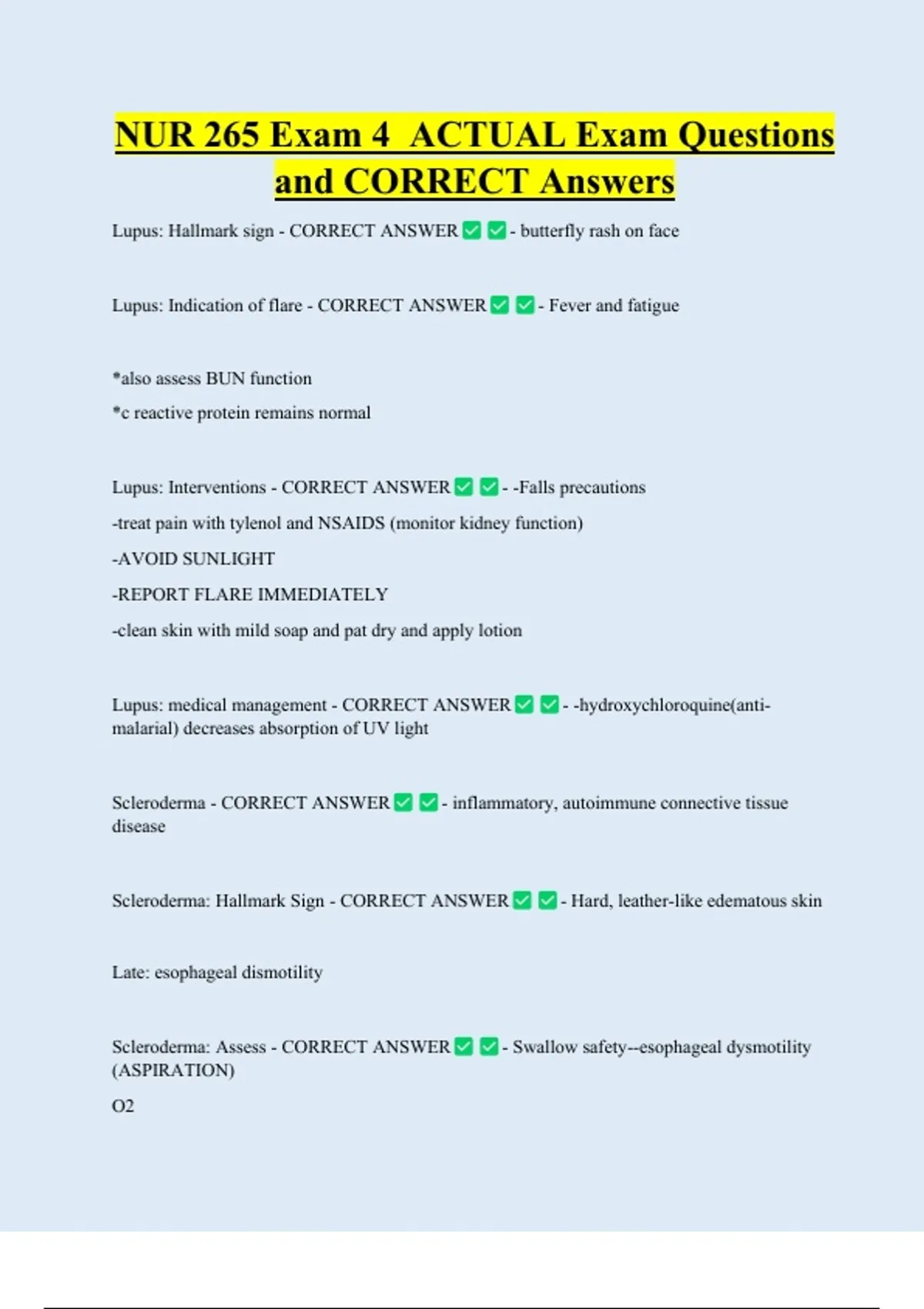 Lupus: Indication of flare - CORRECT ANSWER - Fever and fatigue