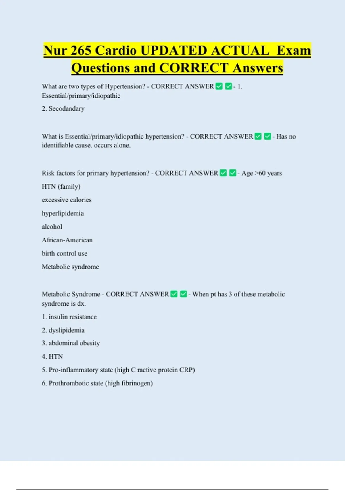 Questions and CORRECT Answers